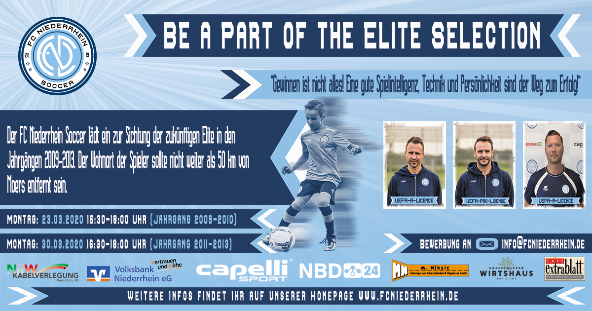 Wir, der FC Niederrhein-Soccer, laden dich ein zur Sichtung unserer zukünftigen Talente!
