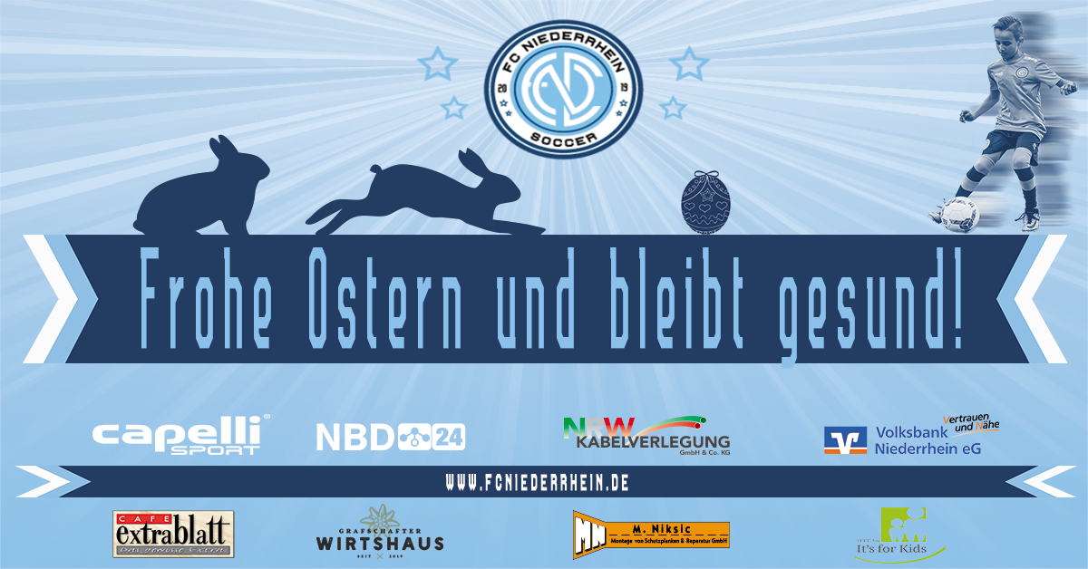 FC Niederrhein Soccer wünscht Euch frohe Ostern 🐰🐇 bleibt gesund und bis bald! Euer FC Niederrhein Soccer 💙🤍🖤 Geschrieben von admin am 12. April 2020. Veröffentlicht in Uncategorized. Vorherige Nächste